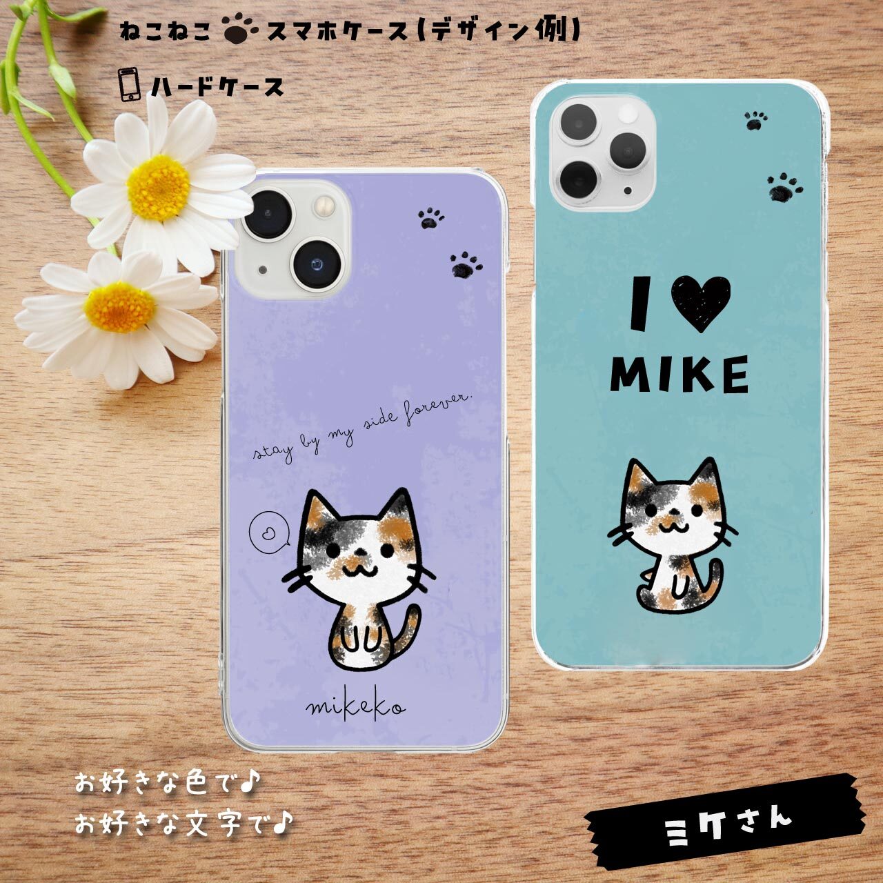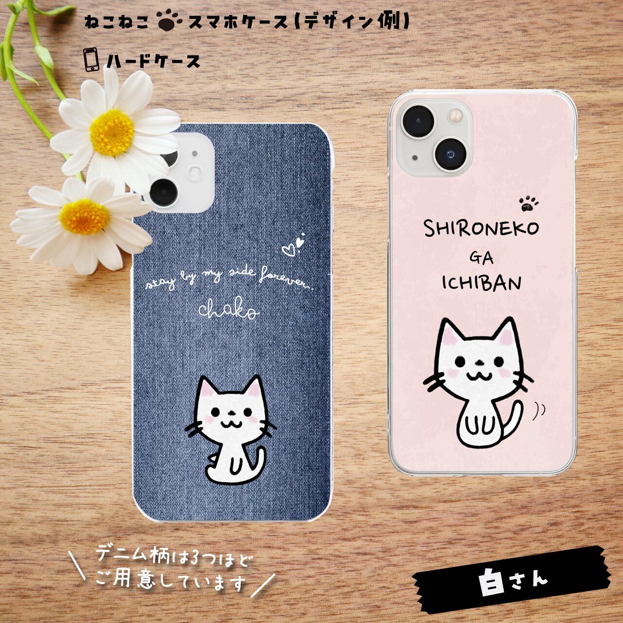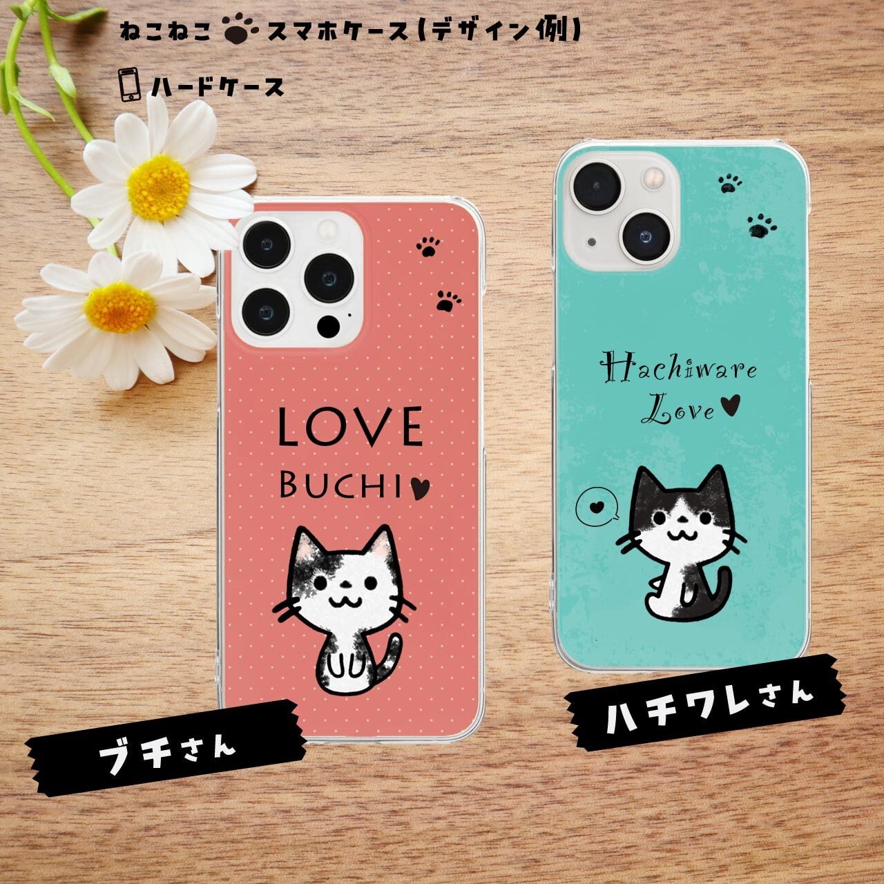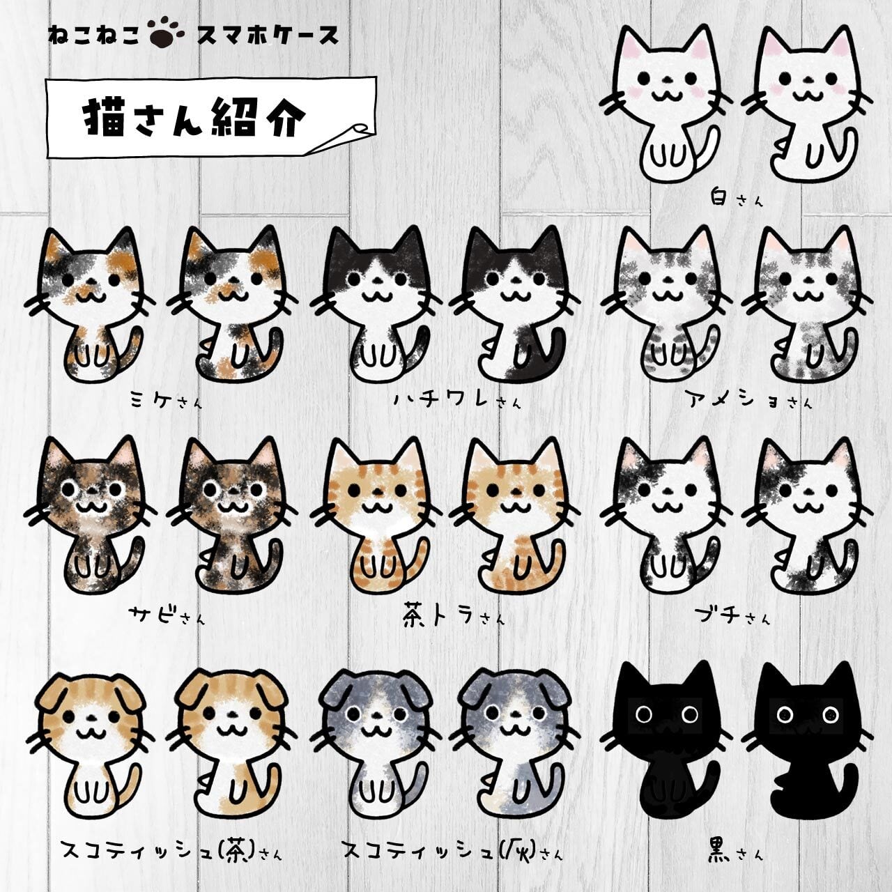 ねこねこさんで手帳型ケースをご希望の方は、「すまし猫さん」のページからご購入いただき、メールで希望(例:ねこねこのミケさん★キティちゃん座り希望)を書いてお知らせください。