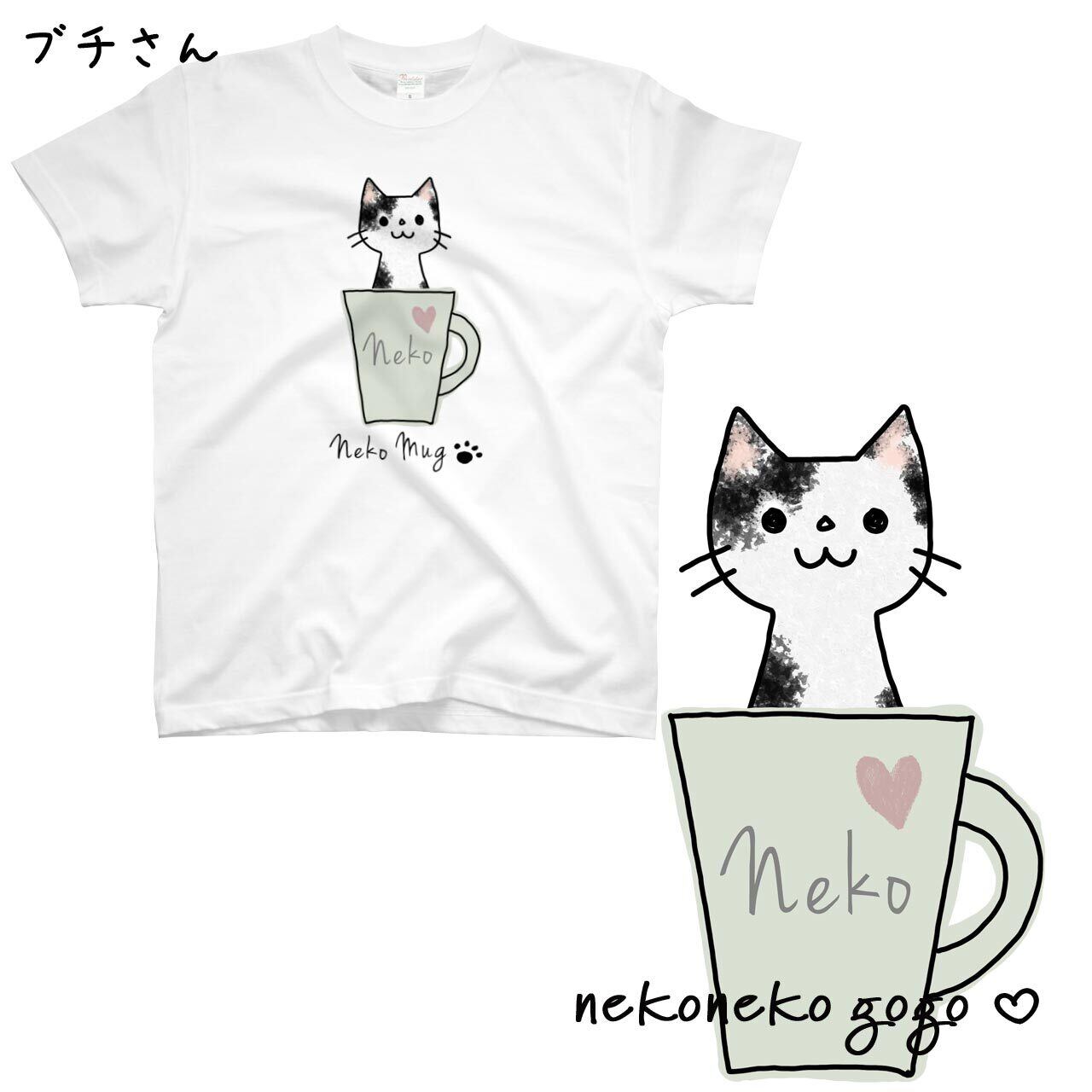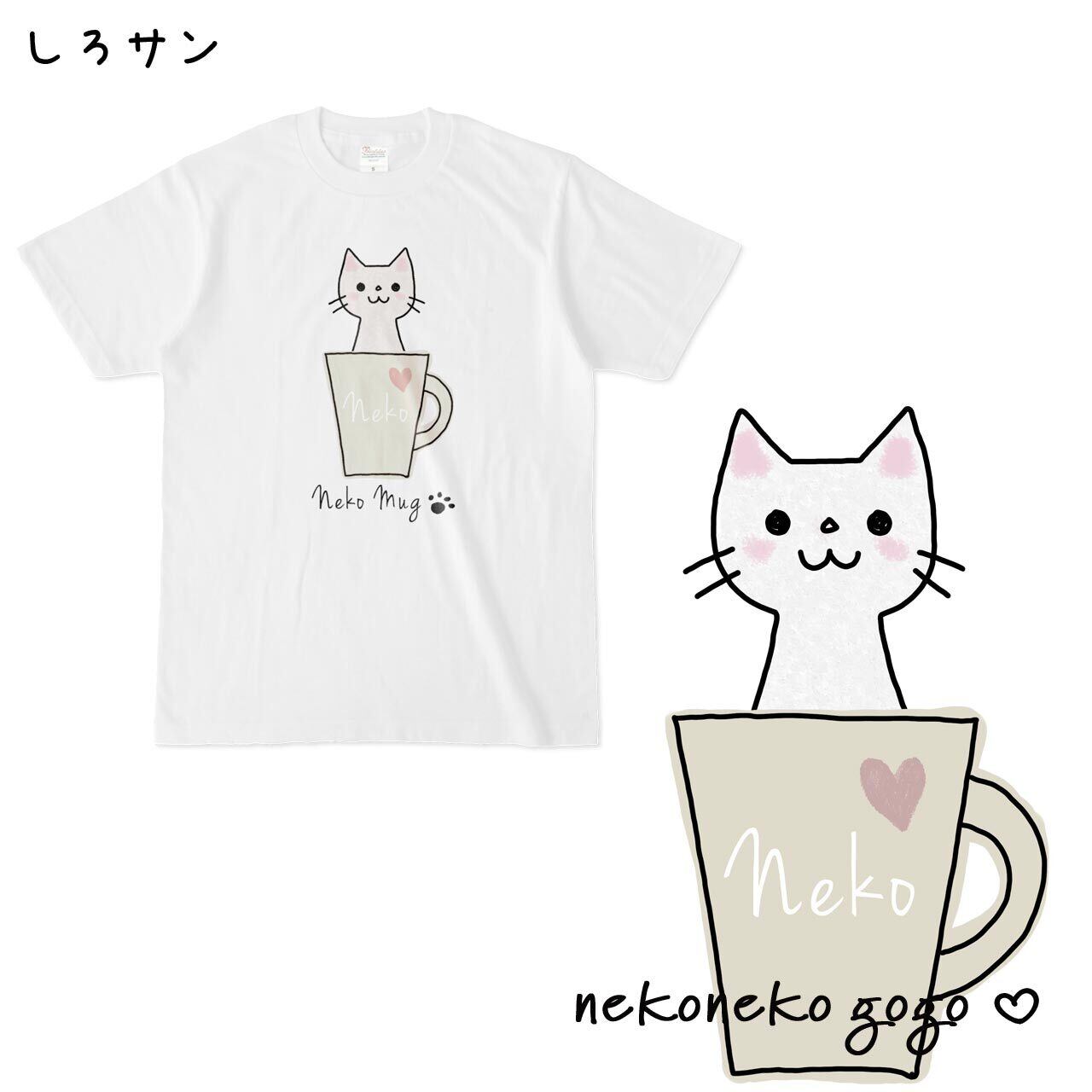 マグカップに入ったねこねこシリーズ猫さんのイラストを印刷したTシャツです。
