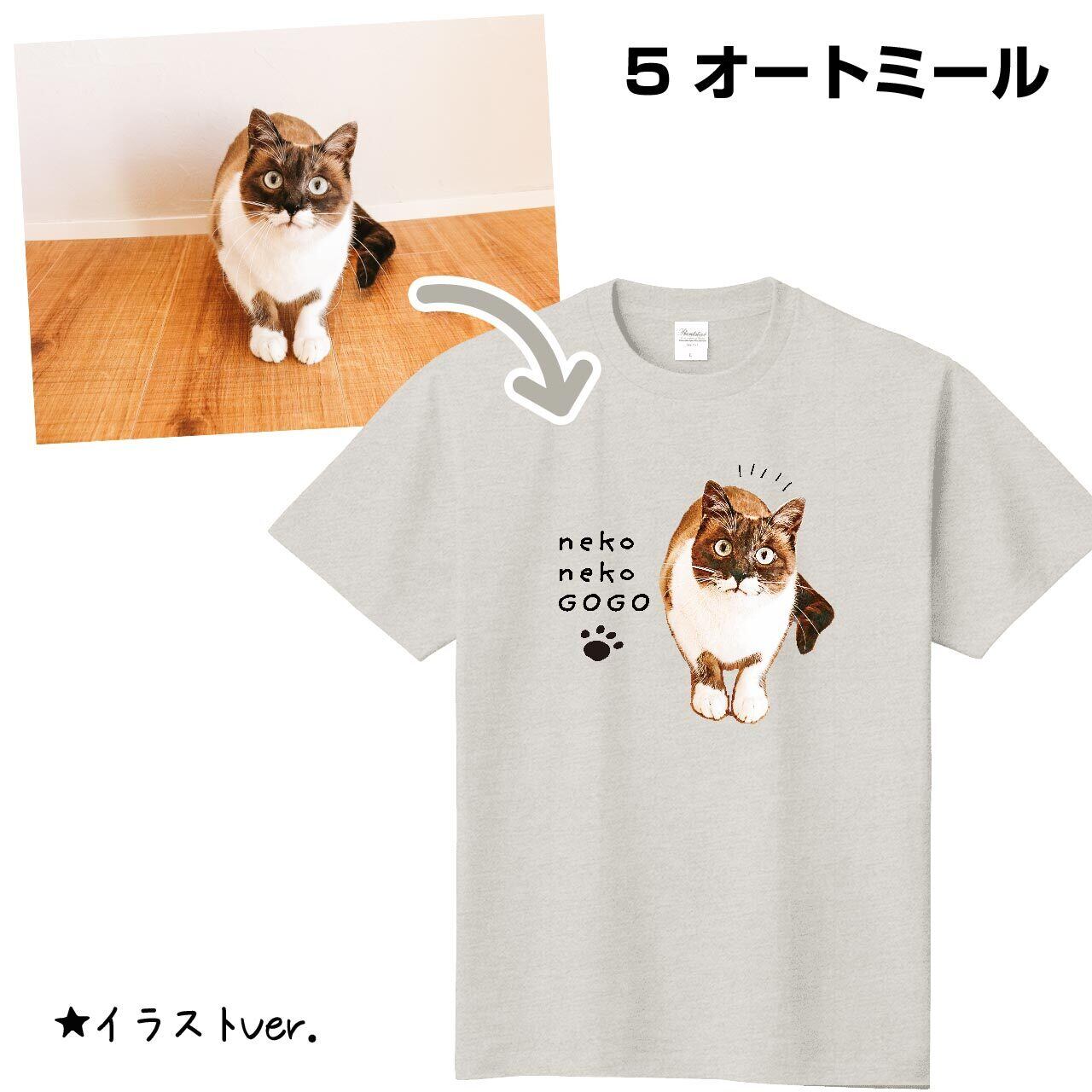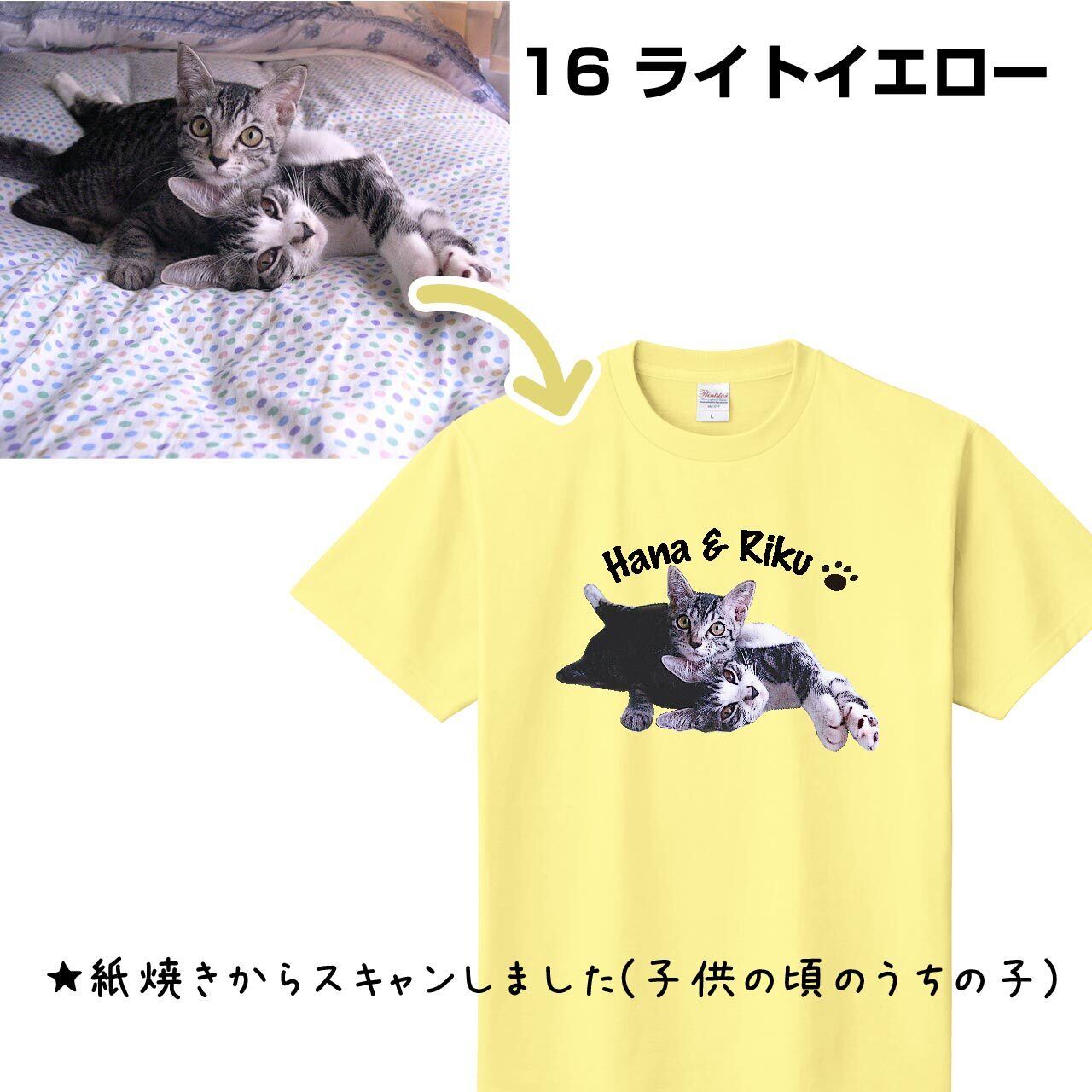 ⚠️ 長毛のお子さん(ヨークシャーテリア/シャム猫など)は、毛先の切り抜きが出来ないため、お受けできません(白Tシャツの場合は多少誤魔化せます)